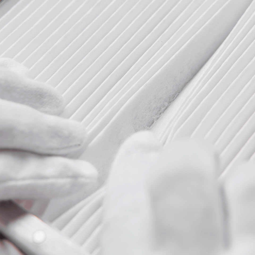 Shemax jako pierwszy wyprodukował pochłaniacze z poziomym filtrem, korzystając z unikalnej technologii. Struktura mikrofibry filtra hałdowego prawie w 100% oczyszcza powietrze z najmniejszych cząsteczek pyłu z paznokci i toksycznych oparów. Prążkowany kształt filtra z gęstego materiału zatrzymuje kurz w przegródkach, co czyni filtry SHEMAX idealnym rozwiązaniem dla profesjonalistów w branży paznokciowej, dbając o czystość miejsca pracy, skuteczne pochłanianie pyłu oraz dłuższą żywotność sprzętu.