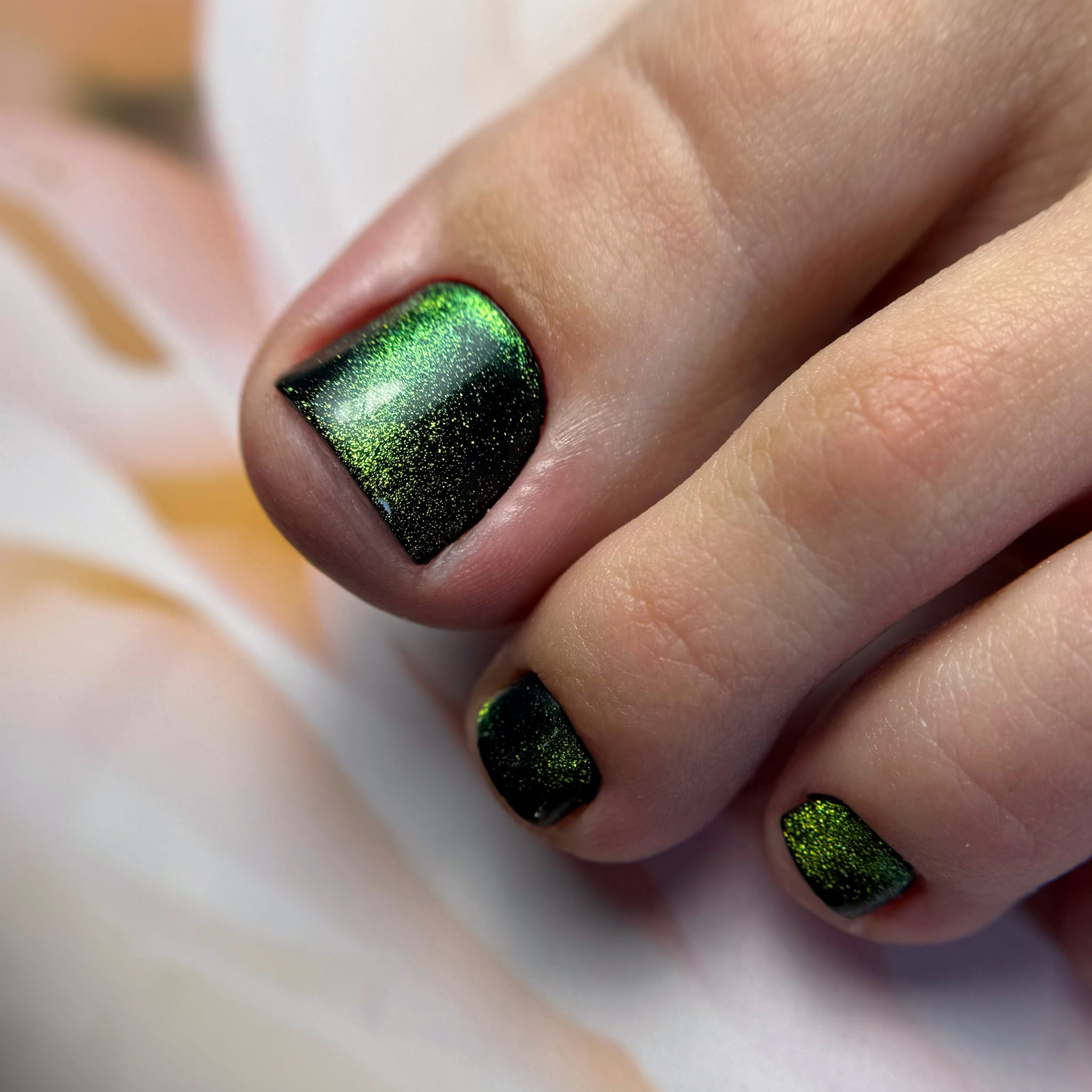 Seria Galaxy Cat Eye to wyjątkowa kolekcja lakierów hybrydowych łączących efekt kociego oka z drobno zmielonym, błyszczącym pyłkiem. Daje spektakularny, kosmiczny połysk i głębię, która zachwyca przy każdym ruchu dłoni.