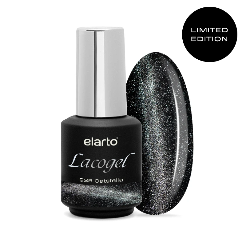 Lacogel nr 935 Catstella to srebrzysty odcień z efektem kociego oka i drobinką flash, który lśni niczym gwiezdny pył. Lakier o formule typu mgiełka - półtransparentny, idealny do budowania głębi koloru. Kosmicznie elegancki i pełen tajemniczego blasku - na wieczór, imprezę lub jako nieoczywisty akcent w klasycznym manicure. Limitowana edycja, która przyciąga spojrzenia jak magnes!