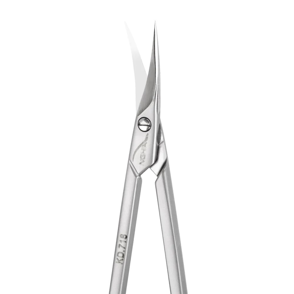 Smukłe, lekko zakrzywione ostrza o długości 17 mm gwarantują gładkie i precyzyjne cięcie, ułatwiając dostęp nawet do trudno dostępnych miejsc. Dzięki temu narzędzie doskonale sprawdza się przy starannym przycinaniu skórek wokół paznokci, zapewniając profesjonalny efekt. Solidne nitowane łączenie zwiększa stabilność i umożliwia płynne, komfortowe użytkowanie, co dodatkowo podnosi wygodę pracy.