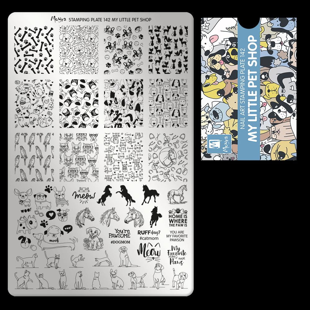 Wzory płytki My Little Pet Shop pozwalają na kreatywne wyrażanie swoich uczuć do czworonożnych przyjaciół. Od zabawnych napisów jak “Meow” czy “You’re Pawsome”, po zróżnicowane ilustracje pupili – twój manicure będzie śpiewał pieśni o miłości do zwierzaków.
