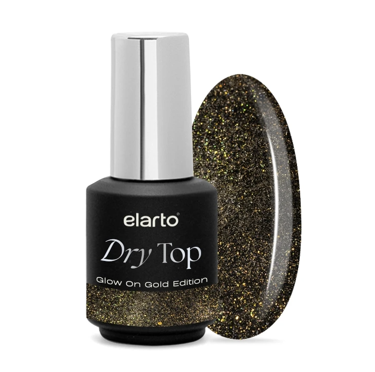 Elastic Dry Top Glow On Gold Edition to żel nawierzchniowy typu no wipe, wzbogacony o złote drobinki, które mienią się niczym najpiękniejsza biżuteria. To idealny sposób na dodanie oryginalnego blasku Twojemu manicure. Jednak to nie wszystko!