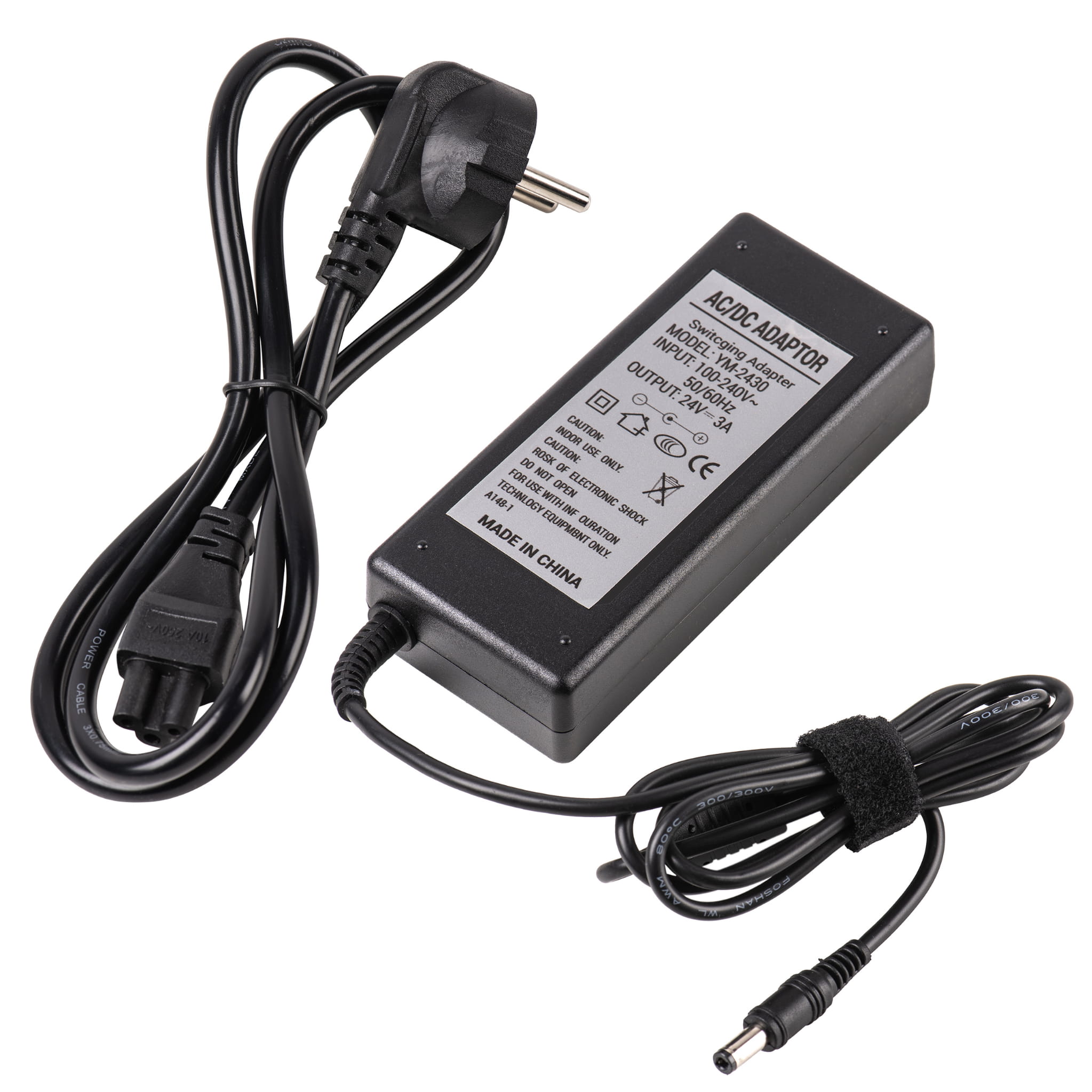 Zasilacz wtyczkowy desktop, Shemax impulsowy, stabilizowany 24V 3A DC z wtykiem2,5/5,5mm.