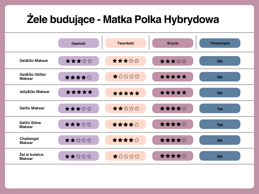 Elastyczność i trwałość - Żel jest elastyczny, średnio twardy, a jego doskonała przyczepność sprawia, że stylizacja jest odporna na uszkodzenia, nawet przy cienkich i osłabionych paznokciach;