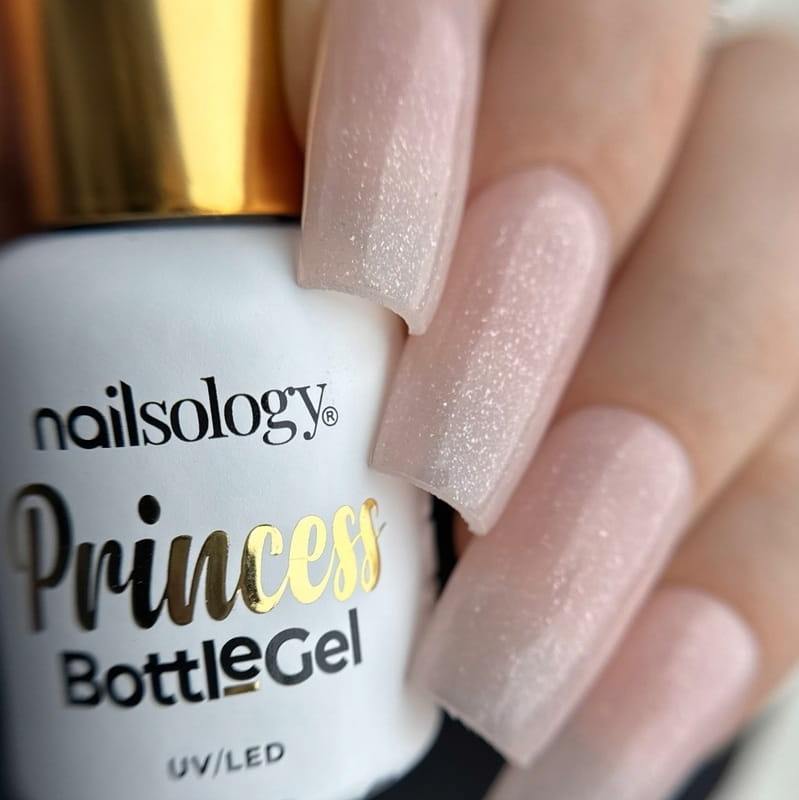 Żel budujący w butelce Nailsology Prince Charming z drobinkami 8ml – Ten wyjątkowy żel o delikatnym, transparentnym odcieniu został wzbogacony subtelnymi drobinkami, które dodają paznokciom niepowtarzalnego blasku.