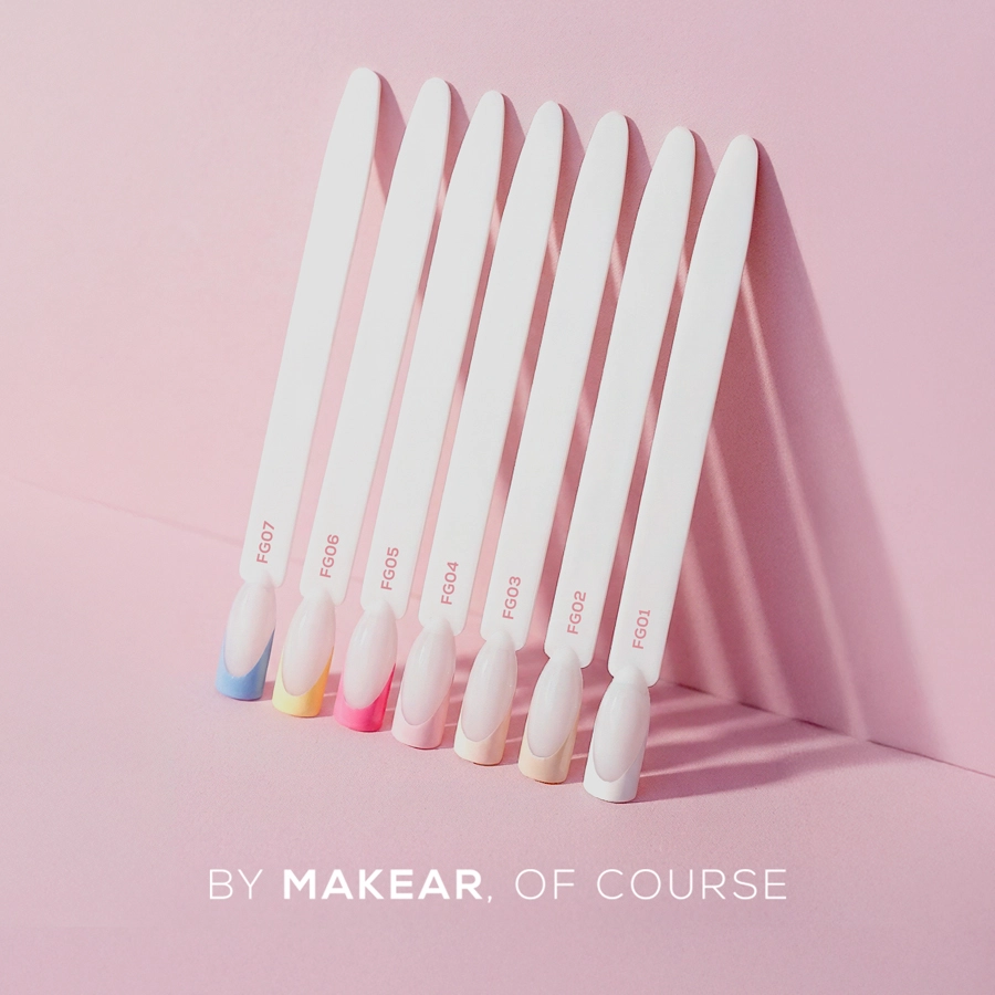 French Manicure Gel Makear to żel do zdobień przeznaczony do wykonywania precyzyjnej linii french manicure. Został opracowany tak, aby dodawał kontroli, stabilności i zapewniał powtarzalny efekt przy pracy z cienką kreską.