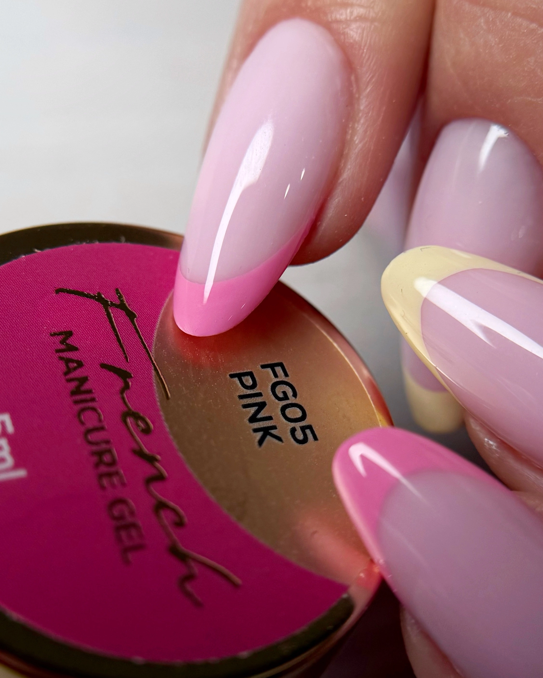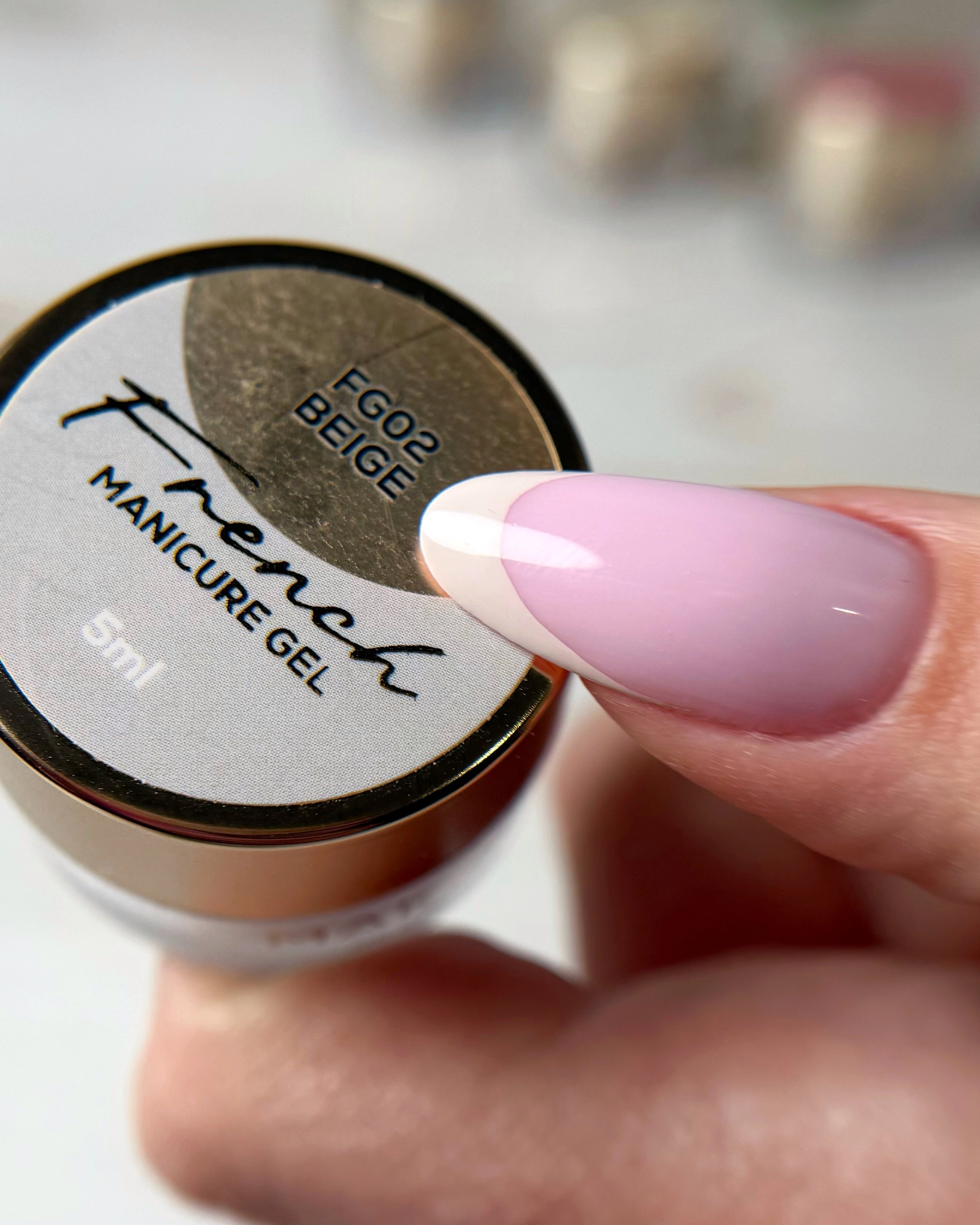 Żel cechuje się wysoką pigmentacją, co pozwala uzyskać wyraźny, równy kolor już przy jednej warstwie. Dzięki temu linia french jest czytelna i czysta, bez konieczności wielokrotnego nakładania produktu. Gęsta, stabilna konsystencja sprawia, że żel nie rozmywa się podczas pracy i zachowuje nadany kształt. Jednocześnie produkt samopoziomuje się, co ułatwia prowadzenie równej linii i dopracowanie jej krawędzi.